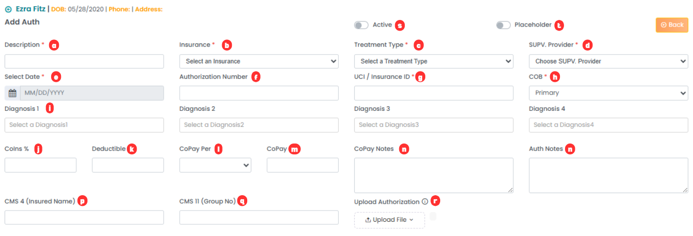 This article explains how you can create an authorization or placeholder alongside adding insurance details.
