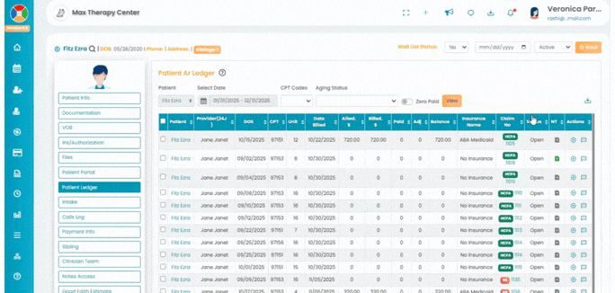- After selecting the patient, select the Patient Ledger option on the left, under the Patient Name.