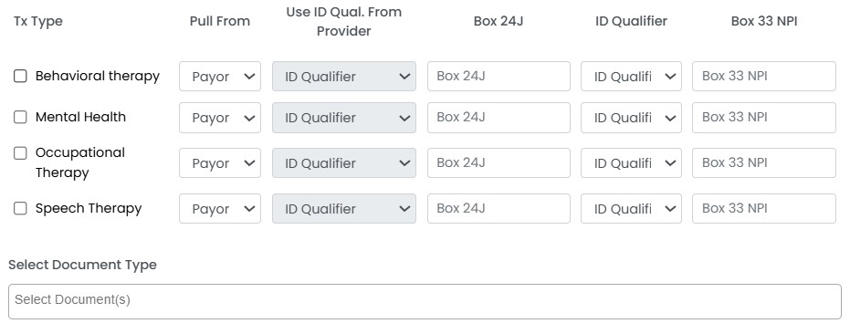 4) Tx Type/ Box 24J/ ID Qualifier - Overrides Box 24J and ID Qualifier in the HCFA