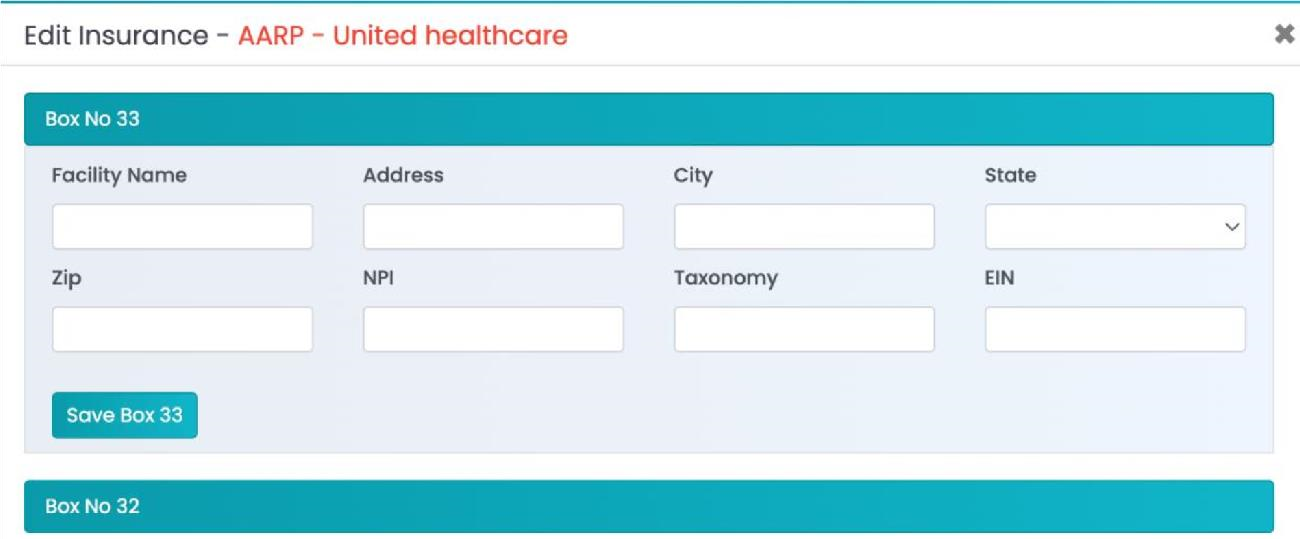 - CMS1500 31/32a/32b/33a/33b - Manually enter data here to populate on the HCFA.