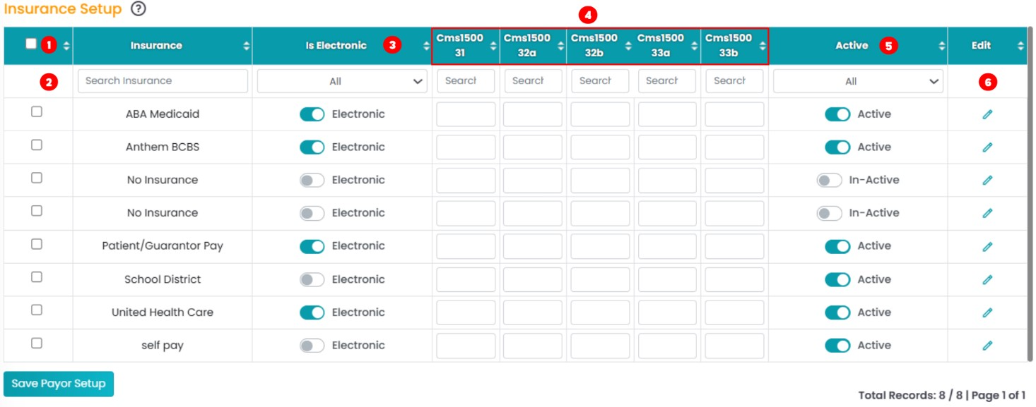 The added insurances in TherapyPM for the facility can be configured using the Insurance Setup option in Settings Tab.