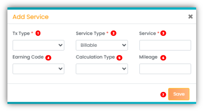 - Service Type - Choose from Billable or Non-Billable