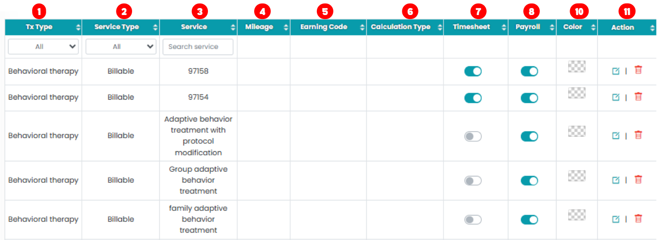 b. Delete Service: Click on the trash icon in the Action column to delete the service.