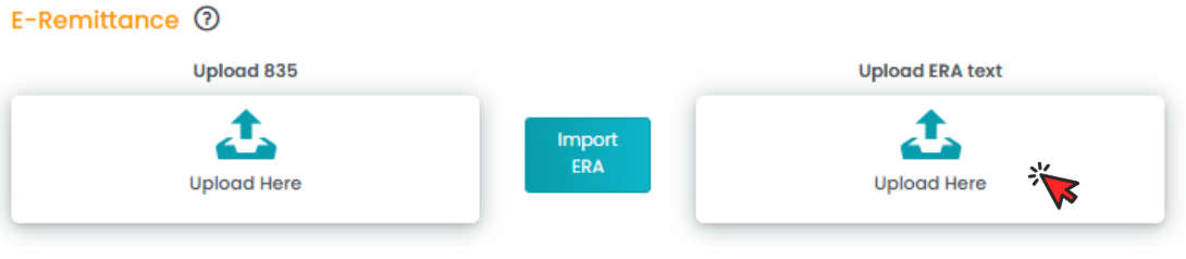 On the E-Remittance page, you can manage 835 files and ERA text files. Select your desired file type, then click the Import ERA box in the center of the page. The system will process the uploaded file and generate a structured payment posting format.