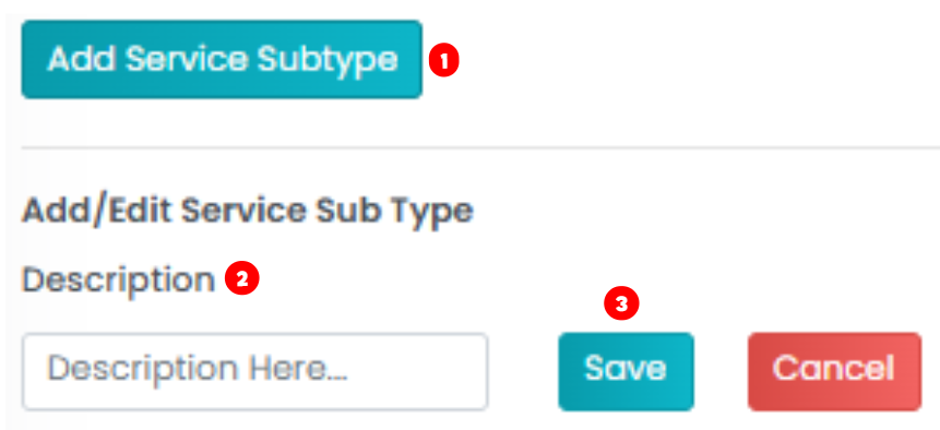 - Edit Service Sub Types: Click on the pen-paper icon and edit the description of the service.