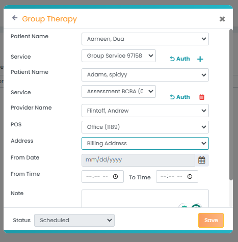 - Fill in the rest of the information in the Group Therapy option. Click on Save to create a new group session.