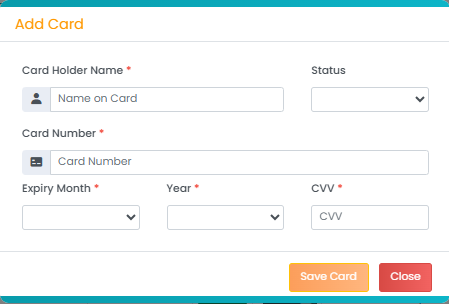 - Click on "Add Card" located in the corner on the right side of your screen. A tab will pop up. You can enter the following details of the patient's debit or credit card: