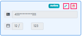 - Edit Icon: Click on the pencil icon on the blue blocks (right). You can also update your card details.