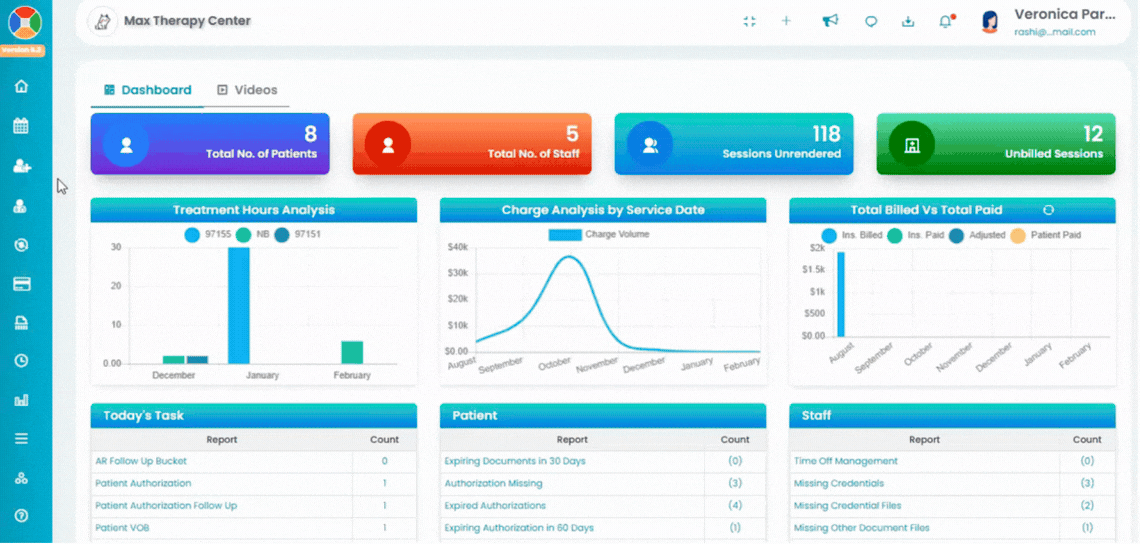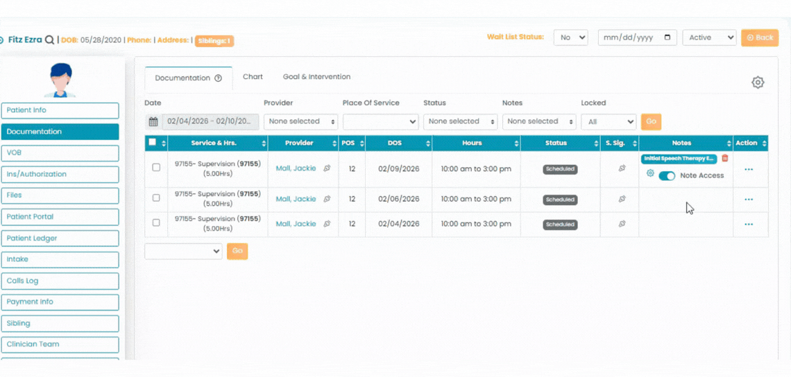 - After selecting the patient, click on "Documentation" on the left, where you can access all details about the patient's appointment sessions.