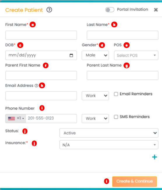 - Phone number: Type the phone number of the client. You can provide a work email or a personal email. Check the box "SMS Reminders" if you would like TherapyPM to send any reminders via messages. We do charge additionally for the messages.