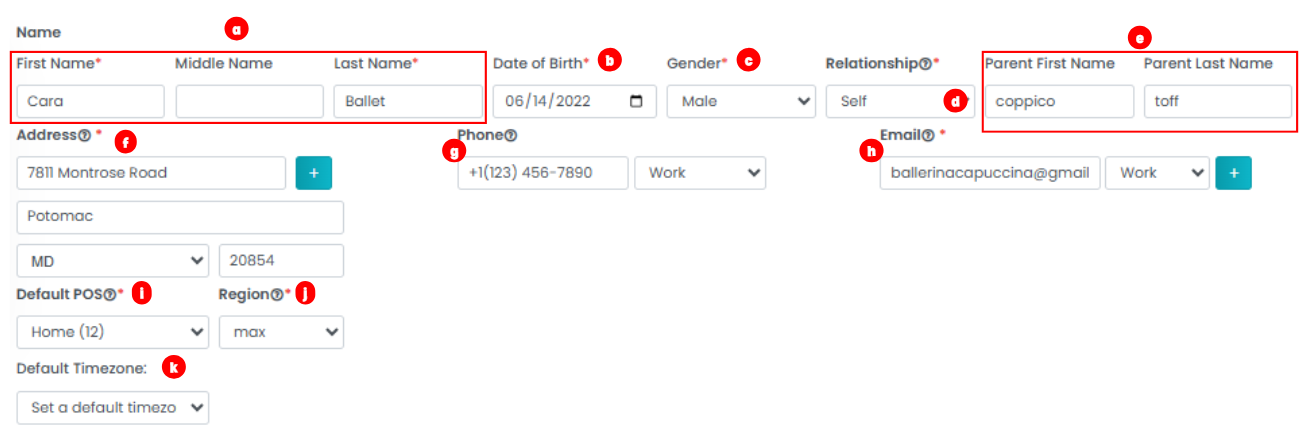 - Parent First Name: First name of parent or guardian, Parent Last Name: last name of parent or guardian.