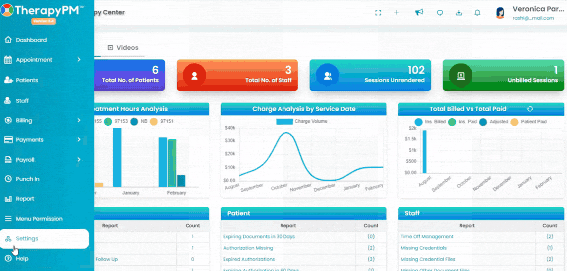 - Navigate to the Settings tab (left). Under Billing Setup, go to "Place of Service". You will see a list of POS that you have added in the past.