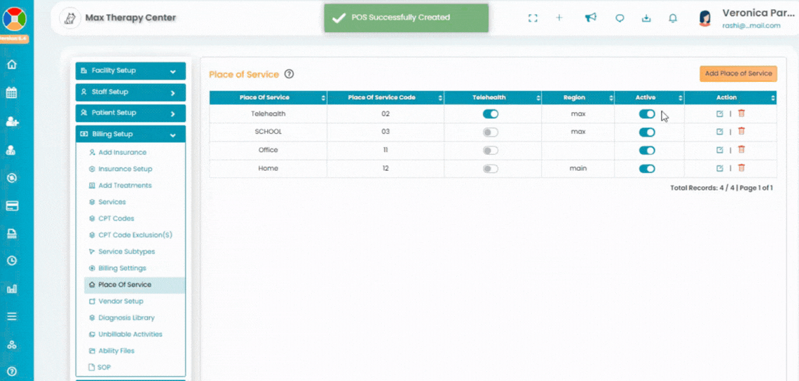 This article explains how you can create a new place of service. The POS (Place of Service) Setup allows you to configure and manage the service locations used for billing and claim generation.