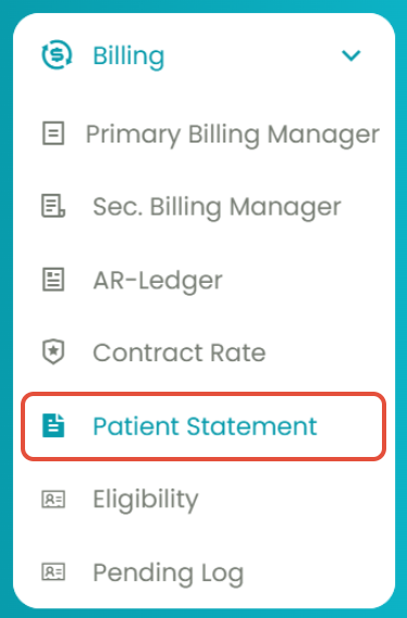- Navigate to Billing > Patient Statement.