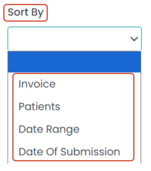 - Use the Sort By filter to generate a patient statements table - Invoice, Patients, Date Range, and Date of Submission.