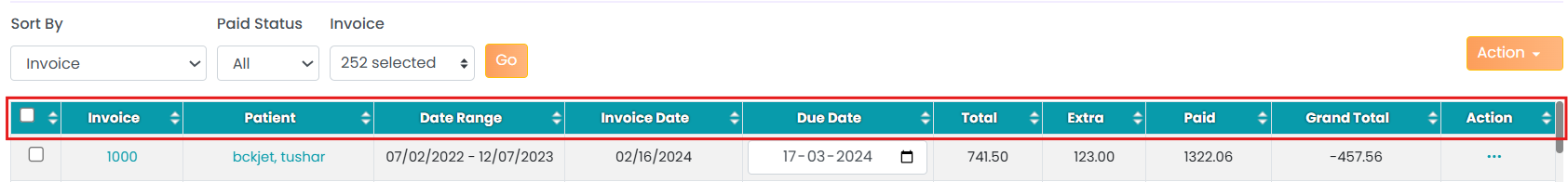 Update Due Date: This option allows you to update the due date for a single invoice or multiple invoices. Simply select the desired invoice(s) using the checkbox, then click on Update Due Date to apply the changes to all the selected invoice(s).