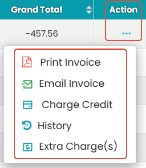 - Action: Allows you to perform additional actions on your patient's invoice: