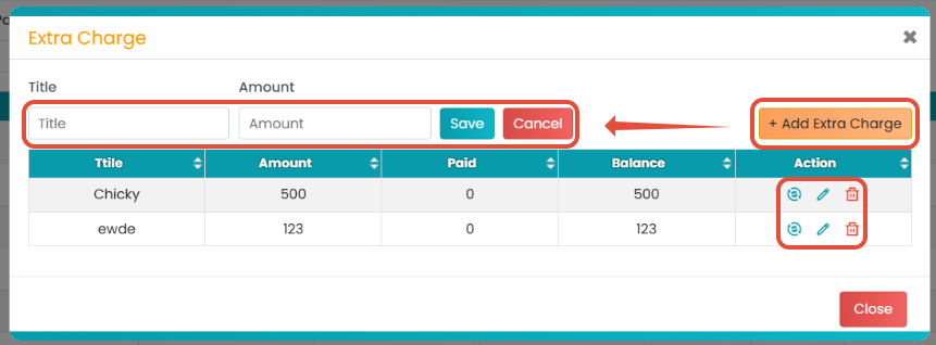 - Extra Charge(s): Add, edit, or delete extra charges for the invoice.