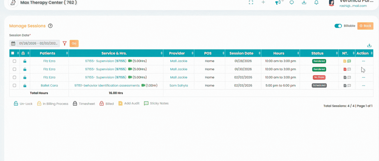 TherapyPM allows you to note down your patients' arrival times precisely too! It can be useful for future reference.
