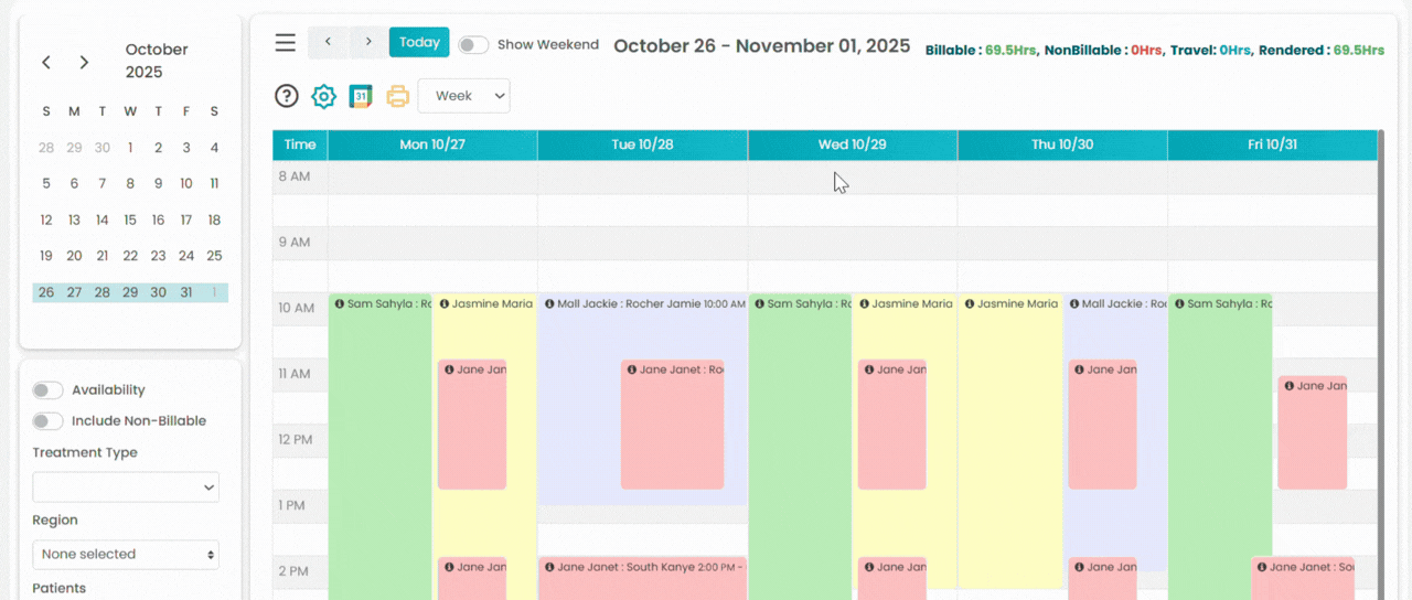- Filter the appointments with your preferred date/date range, treatment type, patients, provider, service, place of service (POS), status, and notes. Click on Go.
