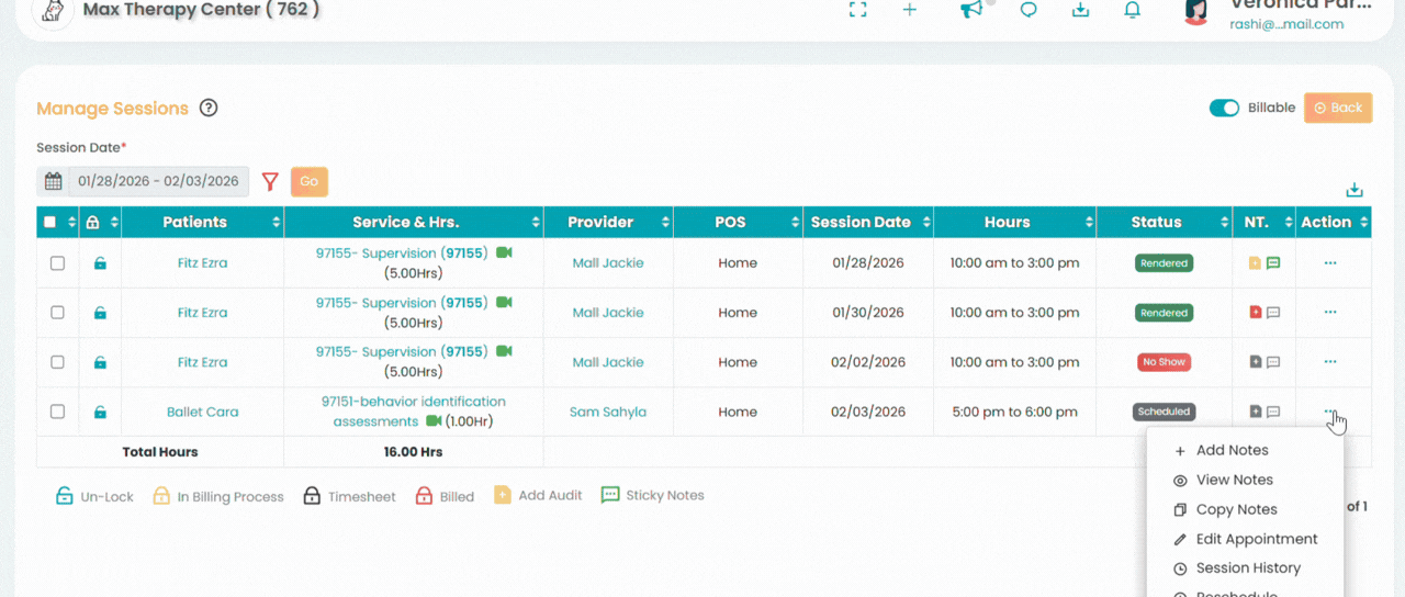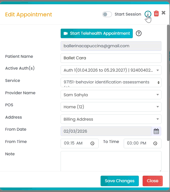 - Select Edit Session. A pop-up Edit Appointment will appear.