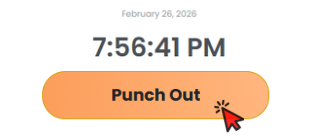 - To clock out, click on the same orange button, now showing Punch Out.