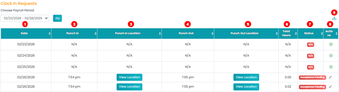 How to View/Manage Clock In Requests?