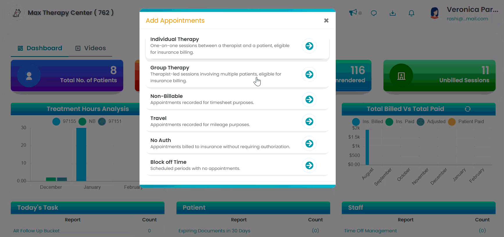 Non-billable Appointments consist of payable services but are not necessarily billable. For instance, they comprise training or office time.