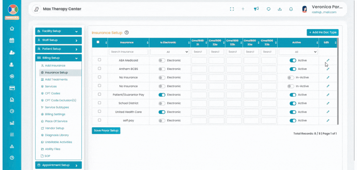- Access the insurance you would like to configure. Please note that this setup will apply only to the selected insurance claims.
