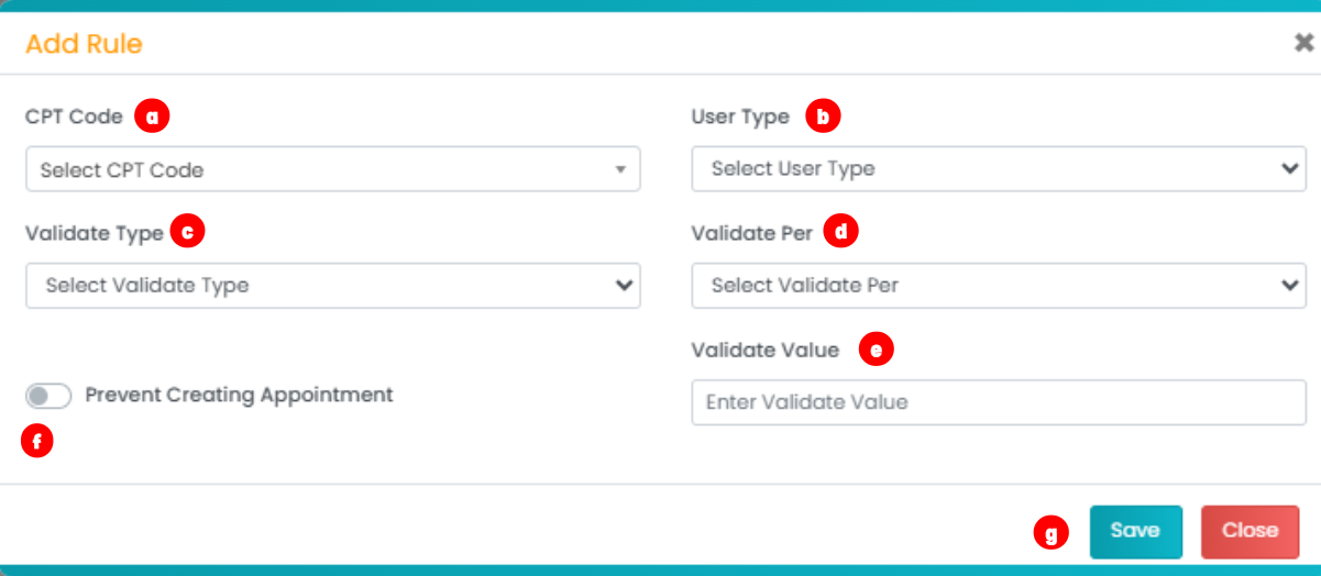 a. CPT Code: Select the CPT code from the dropdown (the code for which you would like to create the rule).