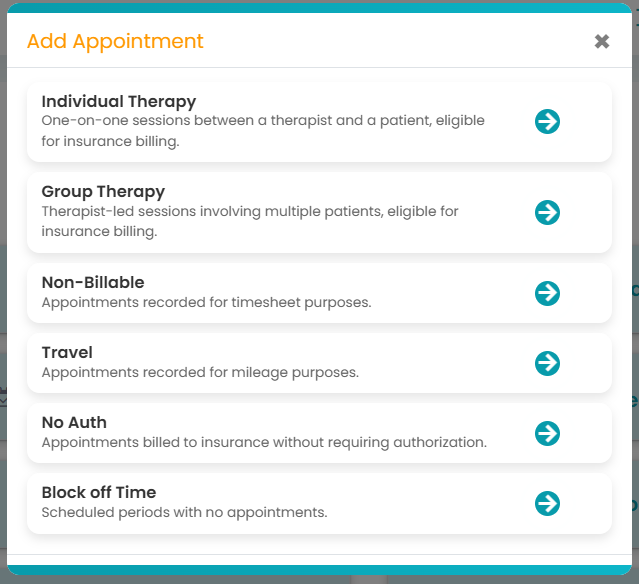 For more information on how to create individual, group, non-billable, travel, no auth, or block off time, you can click on the links here!