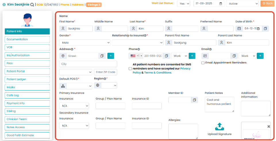 Add/edit the patient information under their profile and save changes.