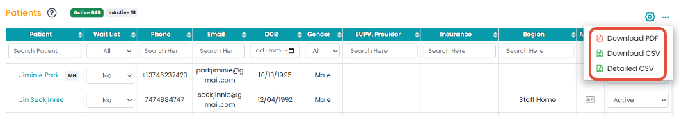 Click the (...) action button to download the files in CSV/ PDF format, or get a detailed CSV.