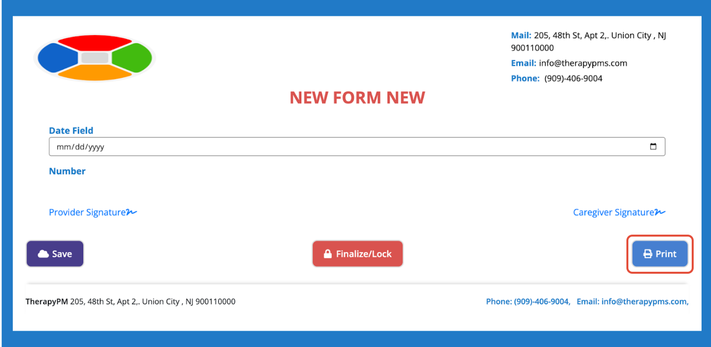 Look for the Print option. It could be either on the top or the bottom of the form.