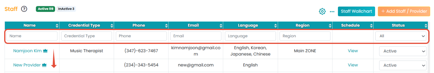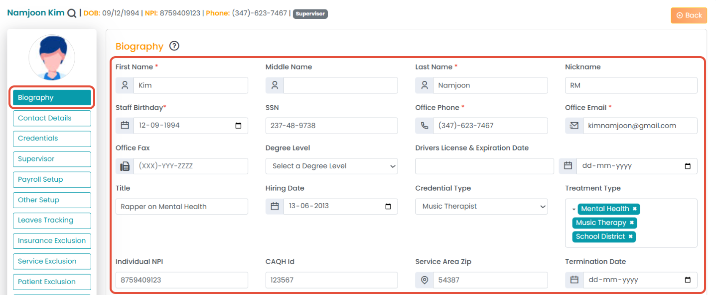 - Go to the Staff module and select the provider (scroll down or use the search bar).