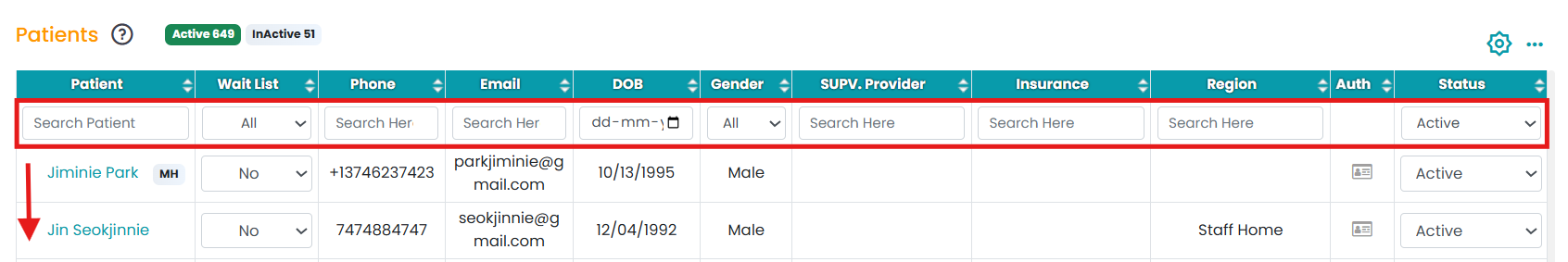 - Go to the Patients module and select the patient (scroll down or use the search bar).
