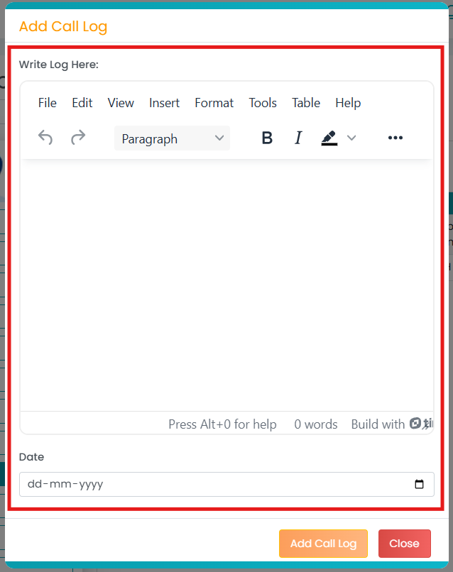 - Click on “Add Call Log” (top right corner).