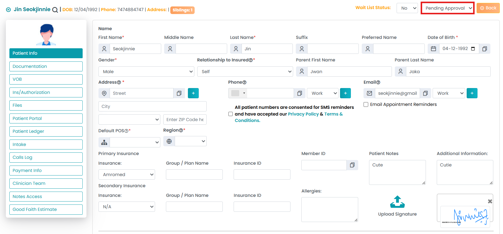 Waitlist denotes that the patient is currently waiting for approval before they can commence their services.