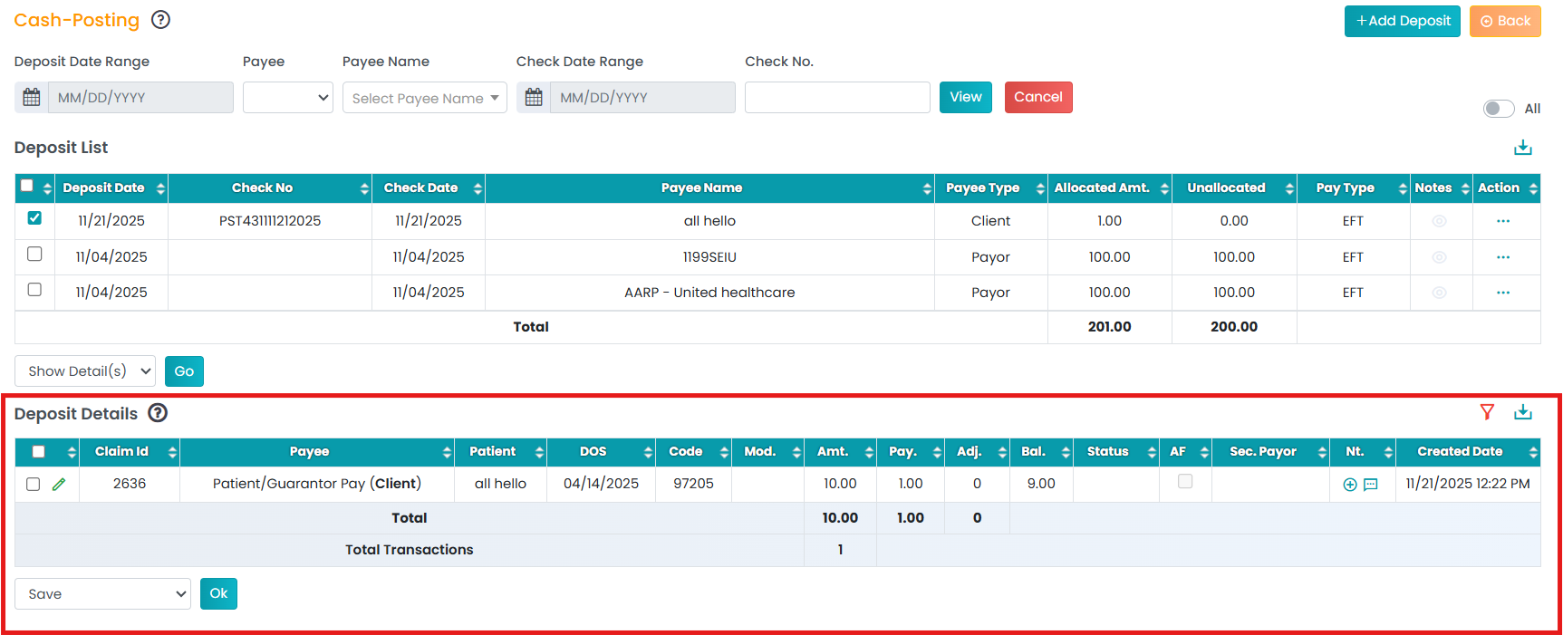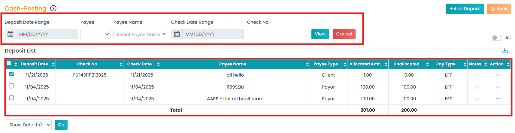 - You can already see the “Deposit List” table. However, you can use the filters to narrow down your deposit search.