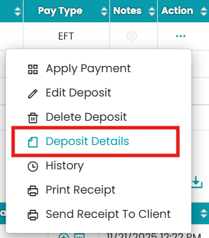 - Under one of the deposit lists, click on the three horizontal dots (…) under the Action column.