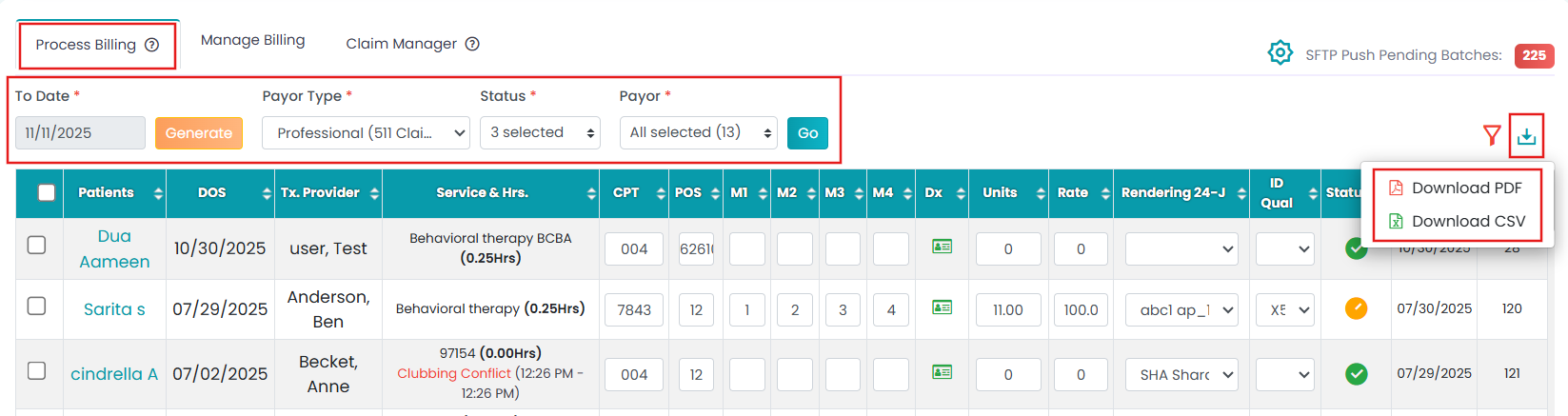 - Navigate to Billing > Primary Billing Manager > Process Billing (1).