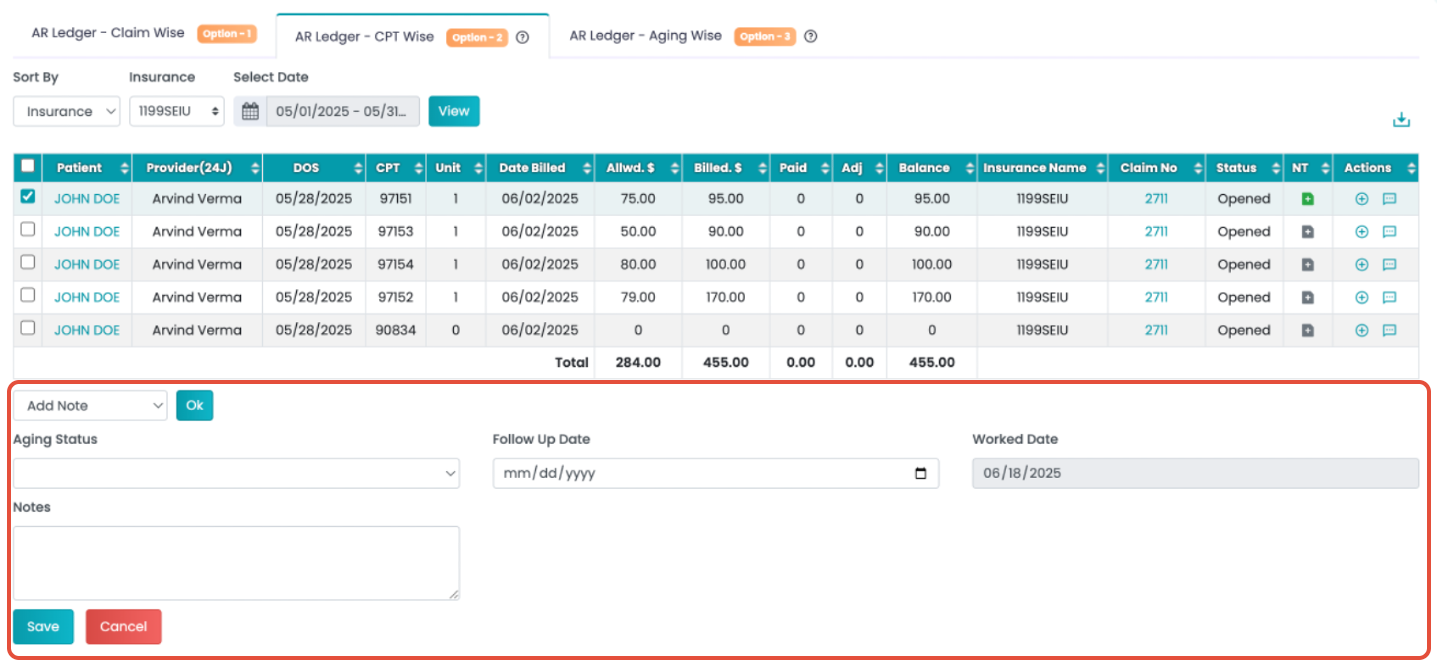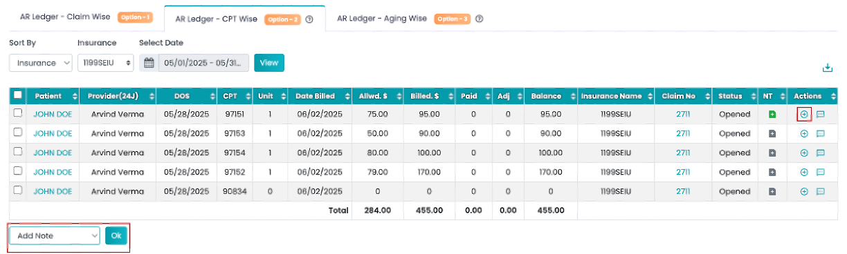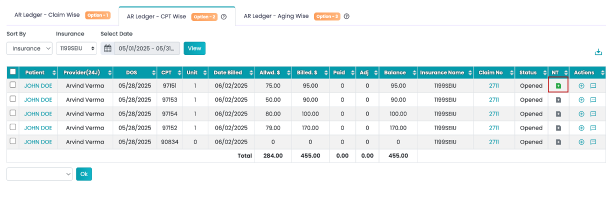 - Click on the 2nd tab: AR-Ledger CPT-wise.