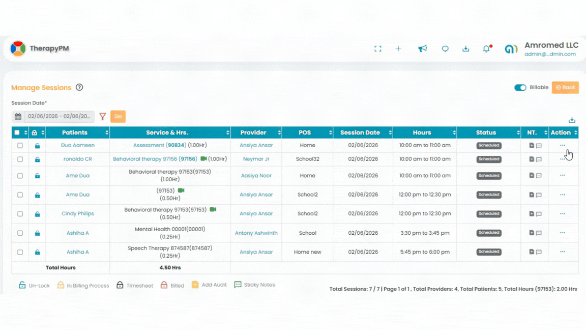 Providers and admins can send a request to the supervisor to add and complete session notes for scheduled appointments.
