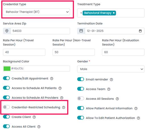 This update helps ensure providers only schedule or bill services matching their credential type reducing manual errors and keeping data consistent.