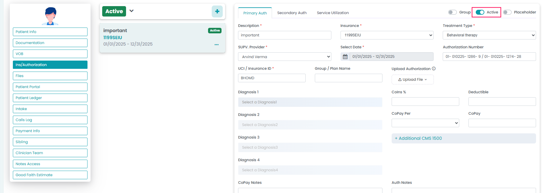This will allow the respective staff to activate patient authorizations themselves. After making necessary changes, you can inactivate the authorization again to avoid confusion.
