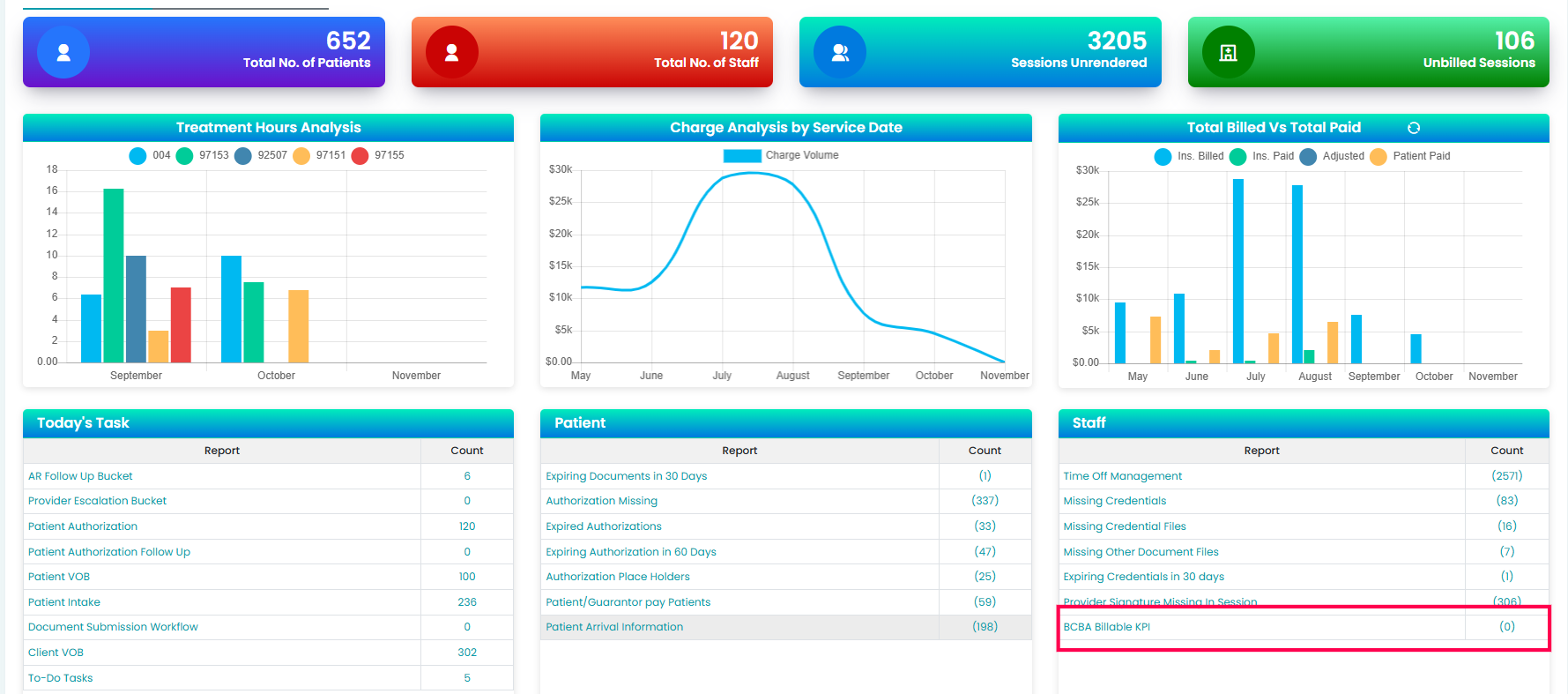 BCBAs can view Behavior Technician hours directly from the dashboard.