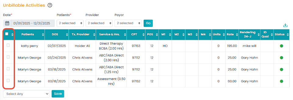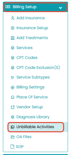 When you select Remove from Billing in the Process Billing section, the session is moved to Unbillable Activities.