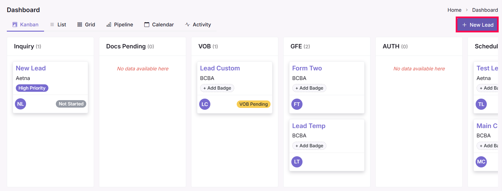 The lead will now appear in the Inquiry stage of your Kanban board and will begin their automated intake workflow.
