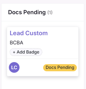 When the family uploads any intake document, the CRM automatically moves the lead to Docs Pending.