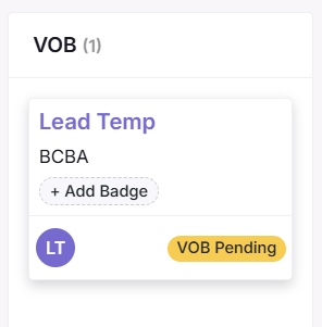 Once all required documents are completed -> CRM advances the lead to VOB Pending.
